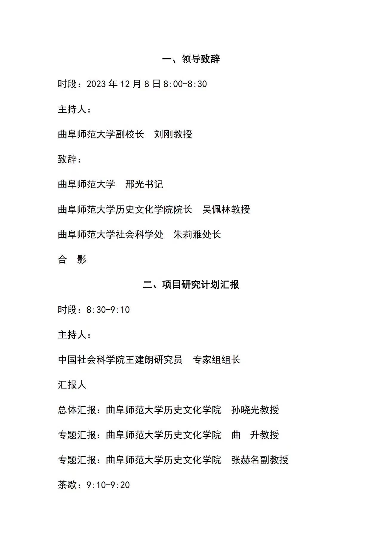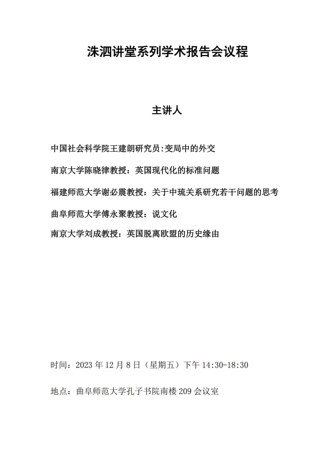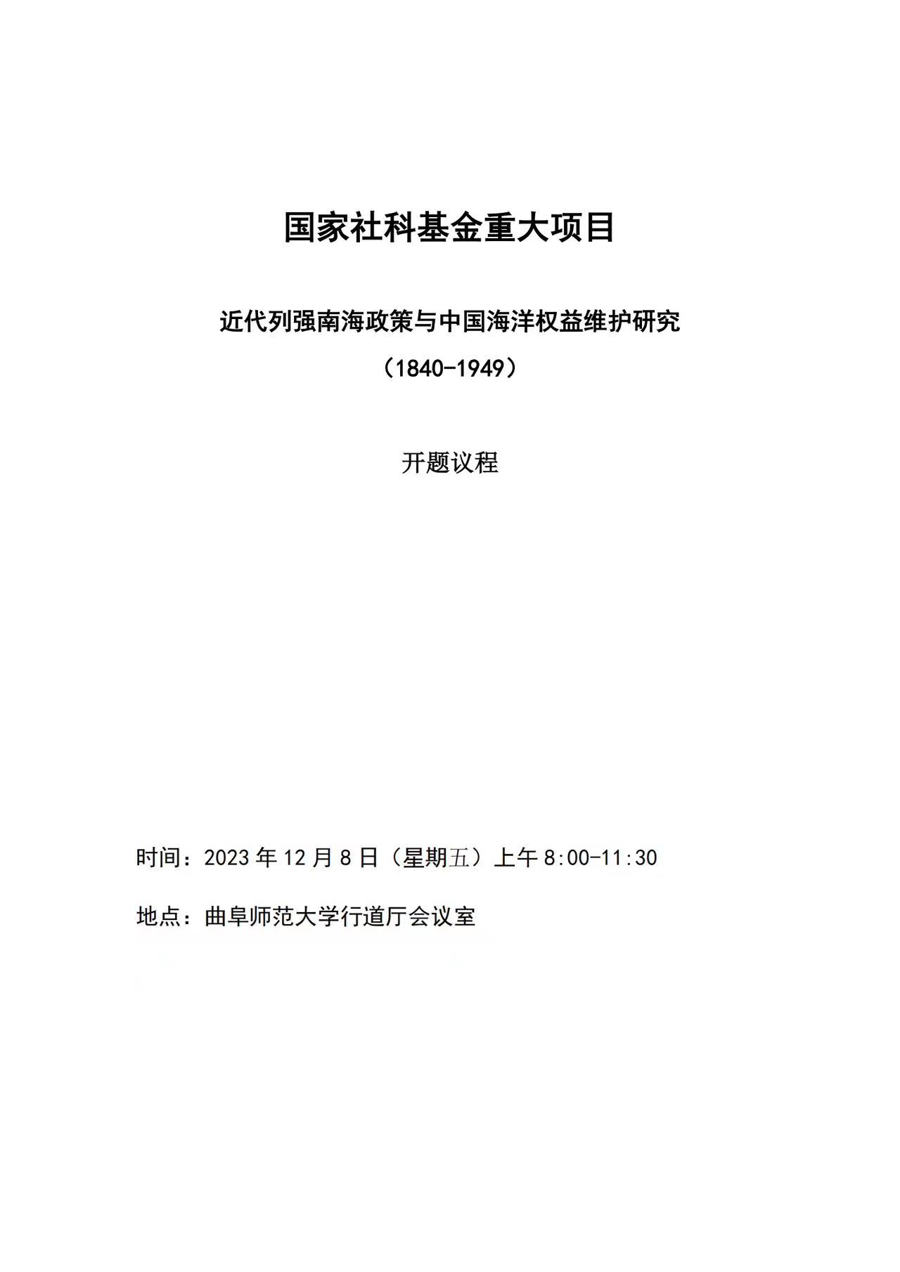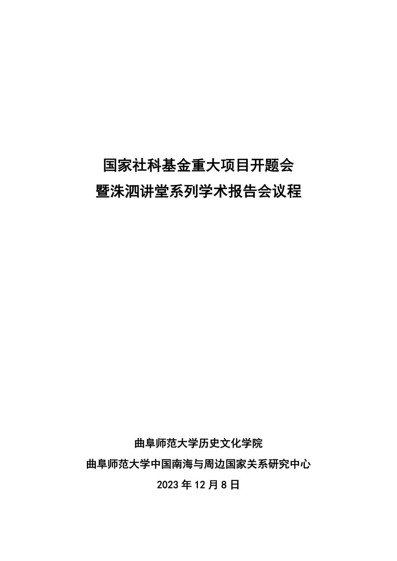 国家社科基金重大项目开题会暨洙泗讲堂系列学术报告会议程