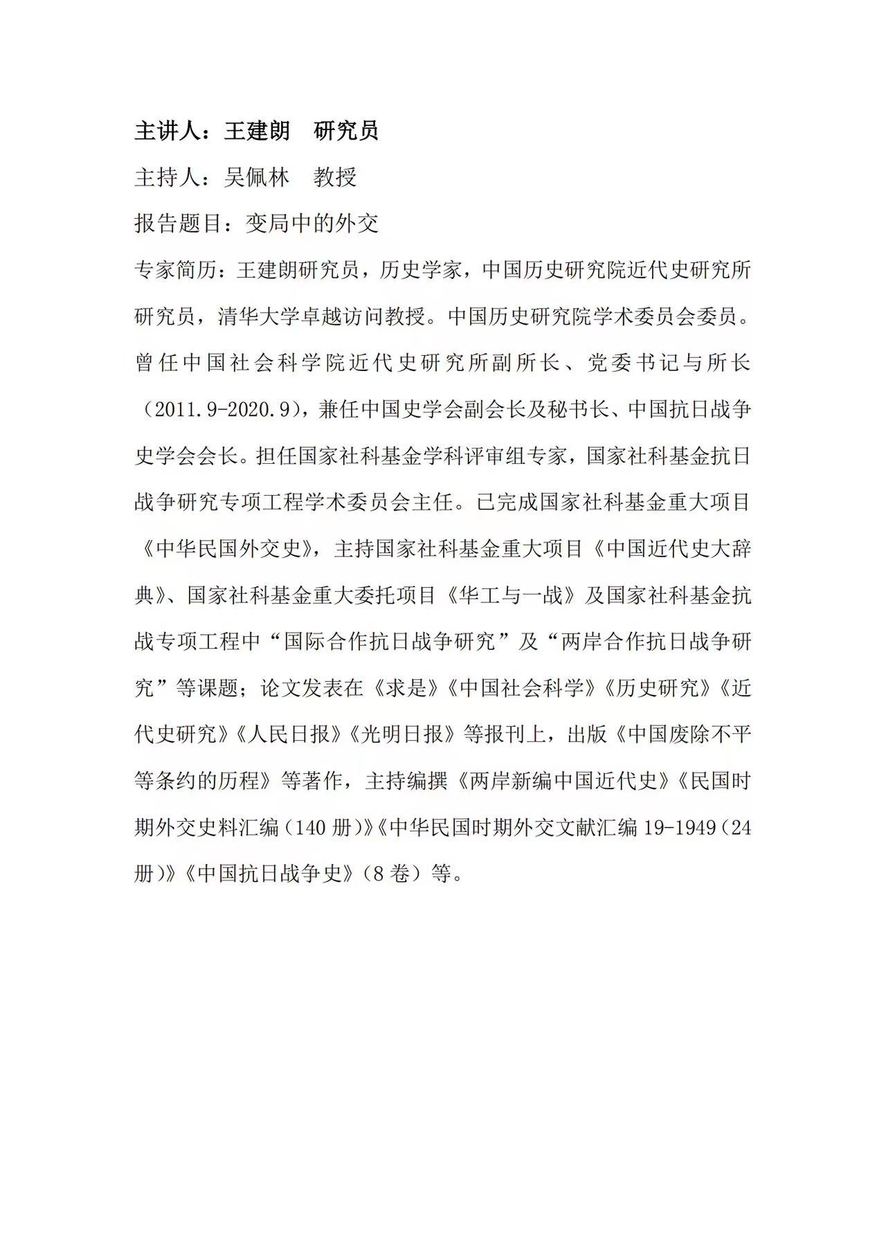洙泗讲堂预告|王建朗:变局中的外交