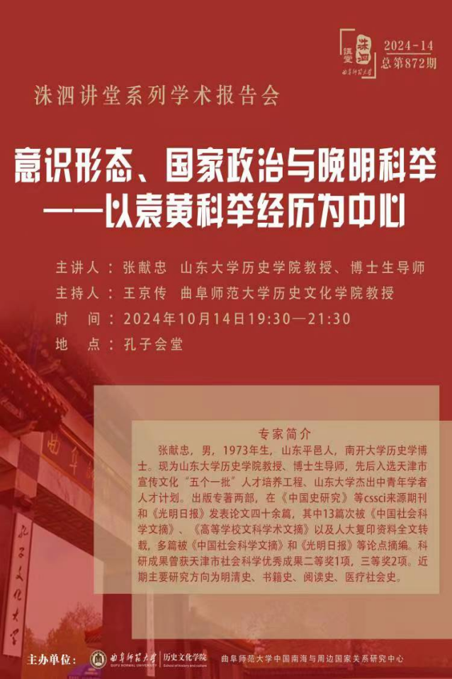 洙泗讲堂预告|张献忠:意识形态、国家政治与晚明科举——以袁黄科举经历为中心