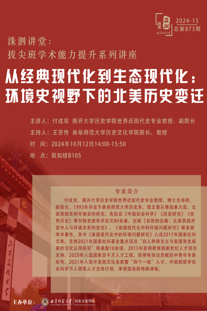 洙泗讲堂预告|付成双:从经典现代化到生态现代化:环境史视野下的北美历史变迁