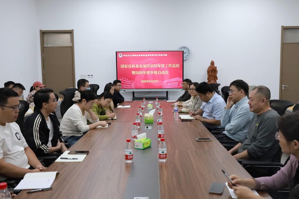 会上,学院副院长王京传教授首先对2025年度国家社科基金项目申报工作进行了全面总结,系统梳理了申报成果与经验,并对2026年度申报工作做出部署,鼓励全院教师积极参与国家社科基金项目申报。随后,张田生、张世慧、唐睿、张光耀四位成功获批2025年度国家社科基金项目的教师结合自身申报经历依次分享经验,详细阐述了选题思路、前期基础、反复打磨等的重要性,为在场教师提供了可借鉴的实践范例。在场教师纷纷表示此次沙龙干货满满、收获颇丰,将结合几位教师的成功经验,迅速推进申报选题和材料撰写工作。
