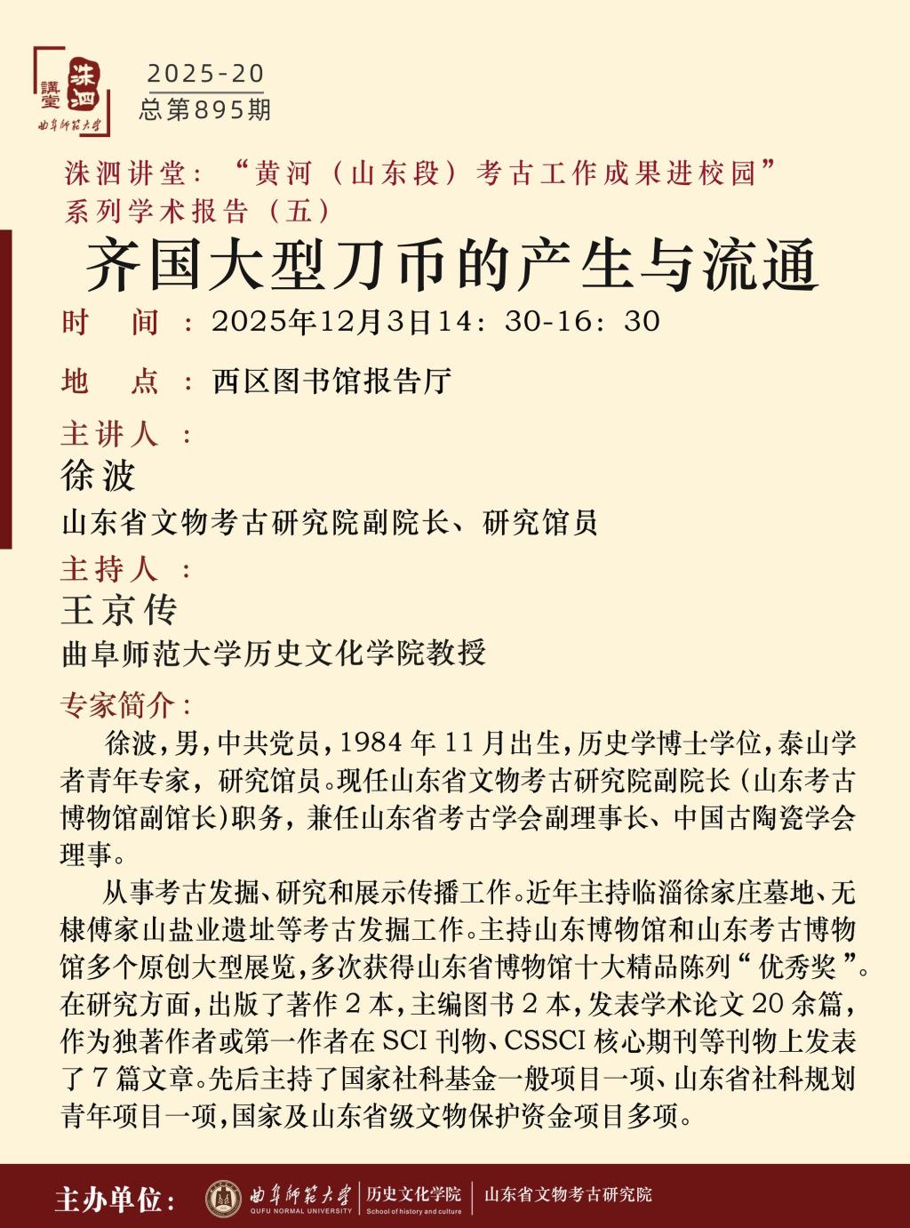 洙泗讲堂预告|徐波:齐国大型刀币的产生和流通