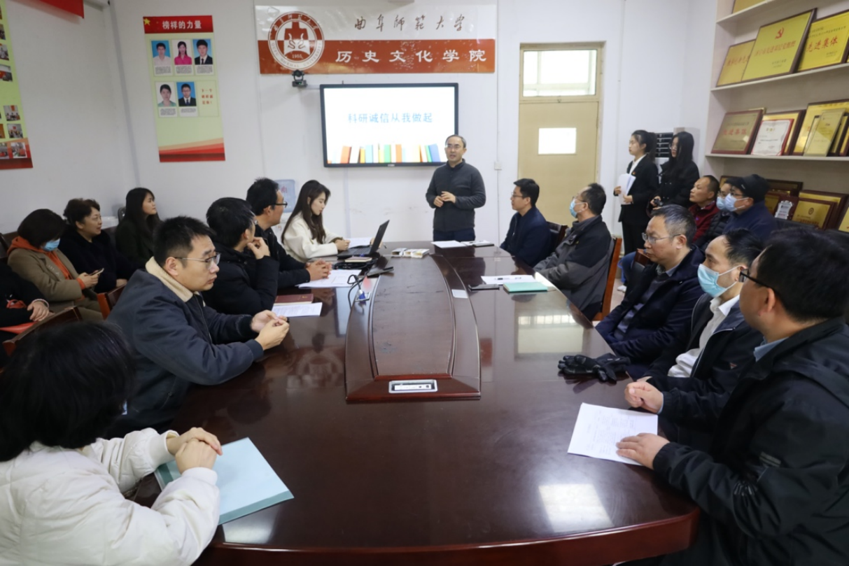 为持续改进科研作风,营造诚实守信的科研环境,更好地开展科研诚信宣传教育,2023年3月17日下午,正妹av 于文史楼会议室204召开科研诚信宣讲会。宣讲会由学院院长吴佩林教授主讲,全体专任教师参加。