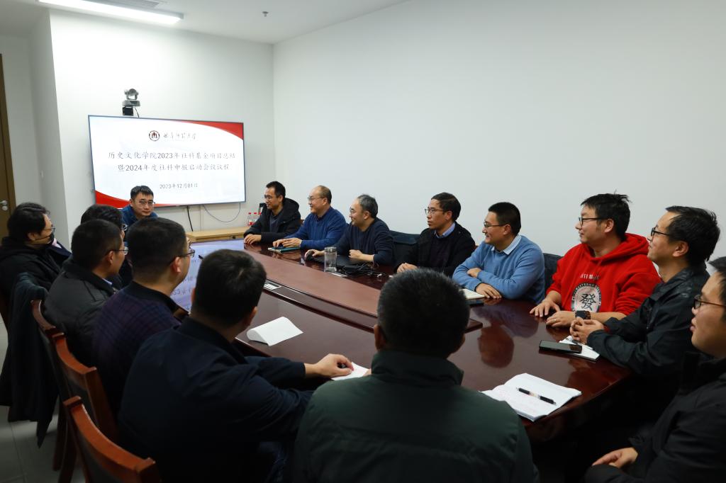 吴佩林等学院领导、教研室主任、2023年度社科项目立项教师、2023年度社科项目未立项教师以及拟申报2024年度社科项目教师参加本次会议。会议由张世慧老师主持。