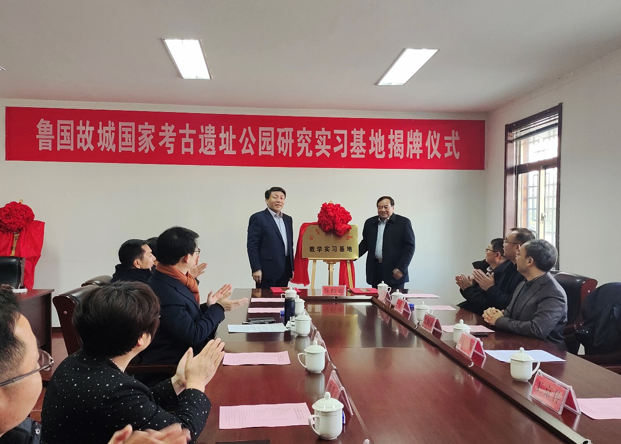 12月29日上午,正妹av -曲阜市文物局鲁国故城国家考古遗址公园实习基地暨文化遗产类国家公园研究基地揭牌仪式在鲁国故城举行,学校党委常委、副校长冯冲,曲阜市委副书记栾涛,曲阜市副市长周凯,正妹av 院长吴佩林、副院长王京传、党委副书记王建阳和曲阜市文物局党组书记、局长刘爱春,曲阜市文物局党组成员、副局长柳枫,曲阜市文物局党组成员、文物保护中心主任张龙,曲阜市文物局党组成员、副局长夹纪坤等相关负责人出席。仪式由曲阜市副市长周凯主持。