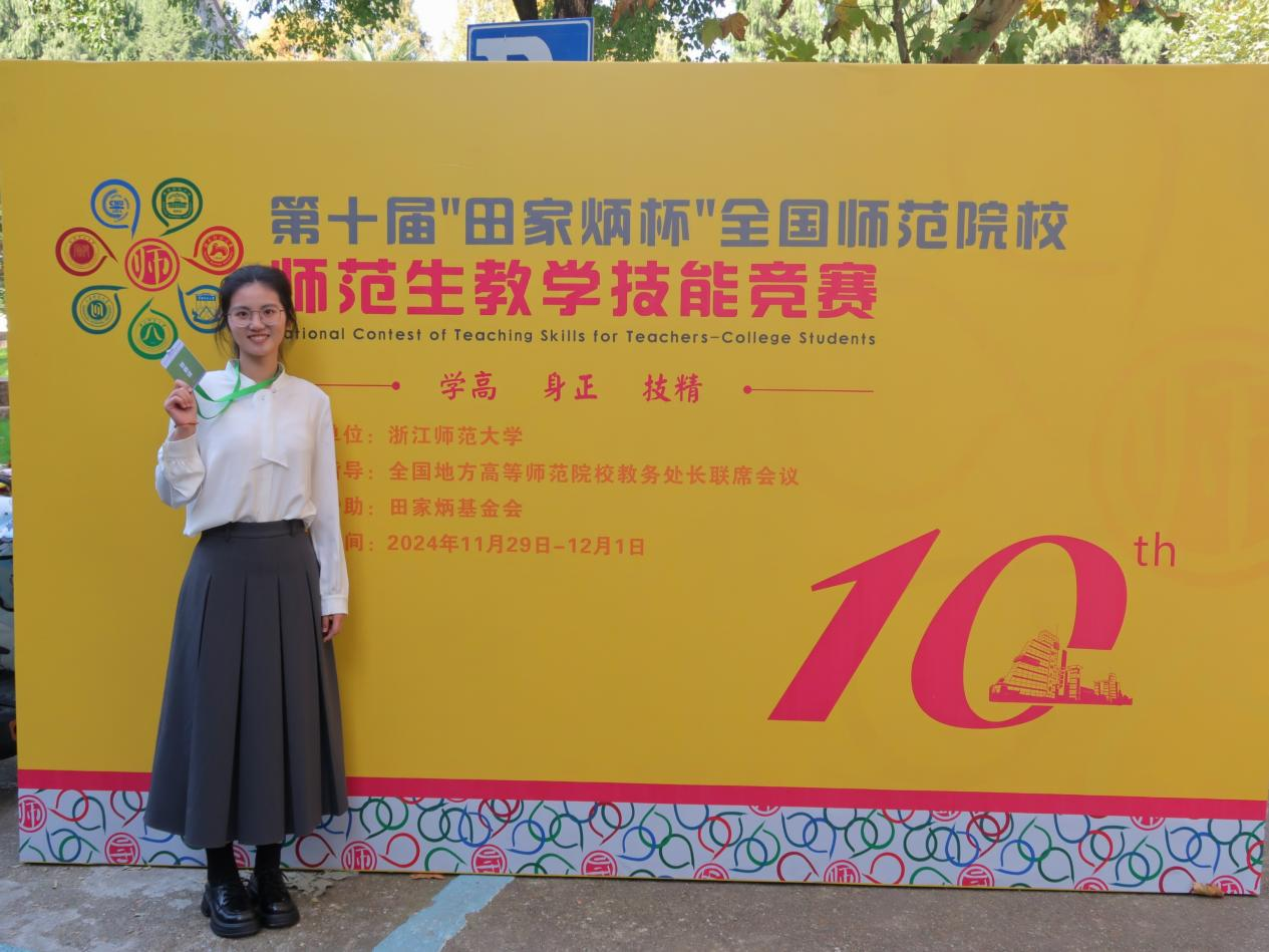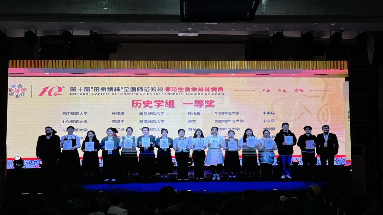 12月1日,第十届全国师范院校师范生教学技能竞赛决赛教学技能大赛决赛成功在浙江师范大学落下帷幕。本届比赛共有来自226所师范院校的1611名选手参加大赛,参赛院校首次突破200所,选手首次突破1000人,其中481名选手到现场参加决赛,最终角逐产生一等奖161名、二等奖320名,其中历史学科一等奖15名,二等奖30名。经过激烈角逐,正妹av 2022级历史学(师范)陈诗盈获一等奖(指导老师:王京传、王刚、李德刚)。