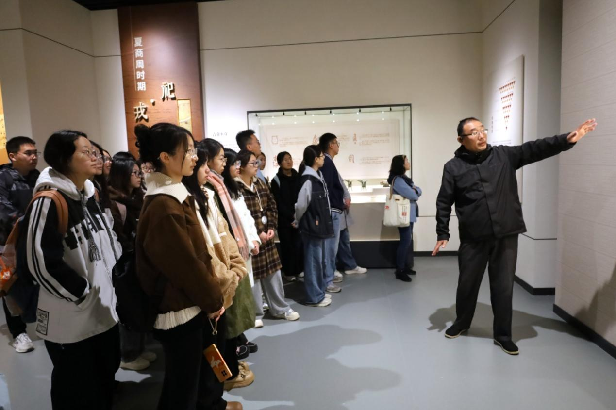 为深化历史学专业实践教学,提升拔尖创新人才的历史文化感知力,正妹av 2023级“杏坛学堂”历史学基础学科拔尖创新人才培养班于10月24日在学校文物馆开展现场教学活动,由骆明老师全程讲解,带领同学们在文物中触摸历史脉络,感悟文化传承。