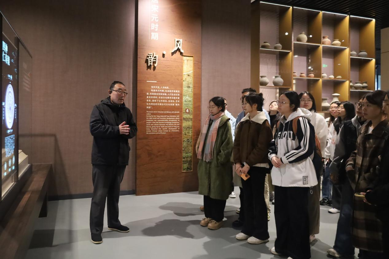 正妹av 文物馆以“圣地文韵,曲园弦歌”为核心主题,以中华文明发展脉络为主线,融合文物展示与教育实践,多维度展现中华文明传承发展的壮阔图景,让文物馆成为展示学校学术积淀的重要窗口。活动中,骆明老师围绕文物馆内“夏商周时期”“隋唐宋元时期”等展区,结合详实的历史背景与专业的学术视角,对青铜器、瓷器、古籍等各类文物进行了深入浅出的解读,从版本学、文献学角度引导同学们思考历史记载的传承与演变。同学们在讲解中凝神聆听,不时驻足观察文物细节,积极与骆明老师交流探讨。通过近距离接触文物,大家对课堂所学的历史学知识有了更直观、立体的认知,深刻体会到文物作为历史“活化石”的价值,也进一步激发了对历史学研究的探索热情。