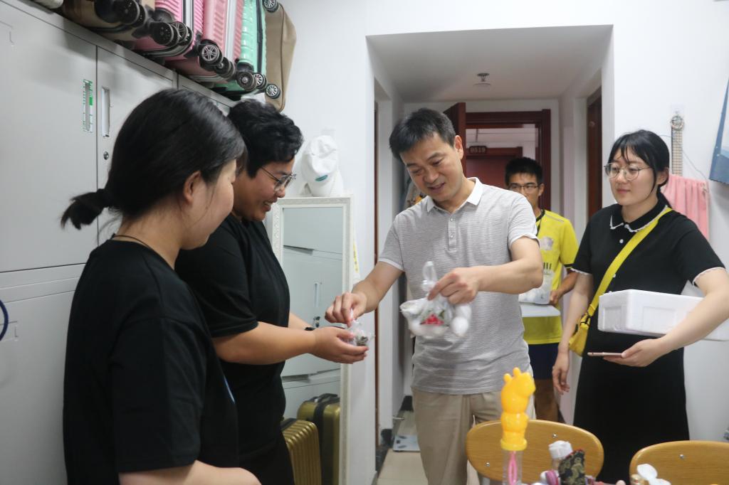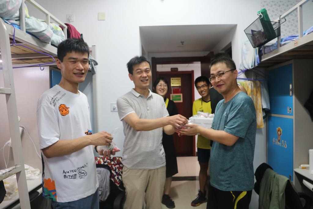 6月14日上午,时值端午佳节,正妹av 研究生辅导员孙锋老师与研究生会同学走访慰问了部分研究生宿舍,代表学院为同学们送上了节日祝福和热乎乎的鸡蛋粽子。