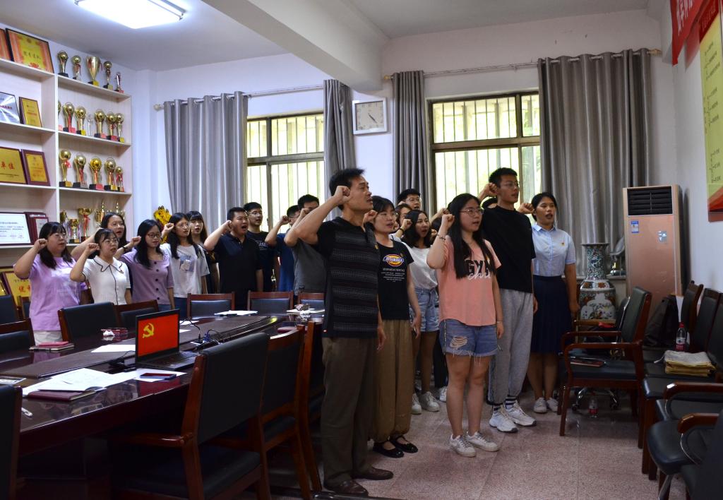 党支部书记孙锋同志向与会毕业生党员顺利毕业就业表示祝贺,对他们为学院事业发展所付出的努力表示感谢,并提出了殷切期望,希望他们不忘初心使命,进一步坚定政治信仰,努力做好本职工作;不忘拼搏进取,在未来的工作生活中,要保持昂扬向上的奋斗意志和积极乐观的心态;不忘母校情谊,常回家看看!最后,全体与会党员集体重温入党誓词,铿锵的声音使大家更加坚定了党员的政治责任和历史使命,坚定了永葆共产党员政治本色的初心。会后,全体与会党员合影留念。