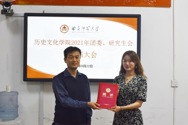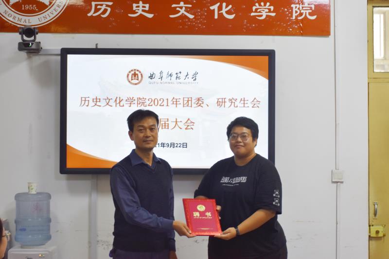 大会在庄严的国歌声中拉开序幕。按照大会议程,学院2020届研究生会主席孙永健首先代表2020届团委、研究生会向大会作述职报告;随后,王建阳、吕厚轩、孙锋、李春玲等老师为学院2020届研究生会主要学生干部颁发荣誉证书;2020届团委副书记兼研究生会副主席田蕾宣读了学院2021届团委、研究生会主要学生干部名单;学院2020届研究生会主席团成员与2021届主席团成员交接并合影留念;2021届研究生会主席焦洋代表新一届团委、研究生会全体成员进行了表态发言。