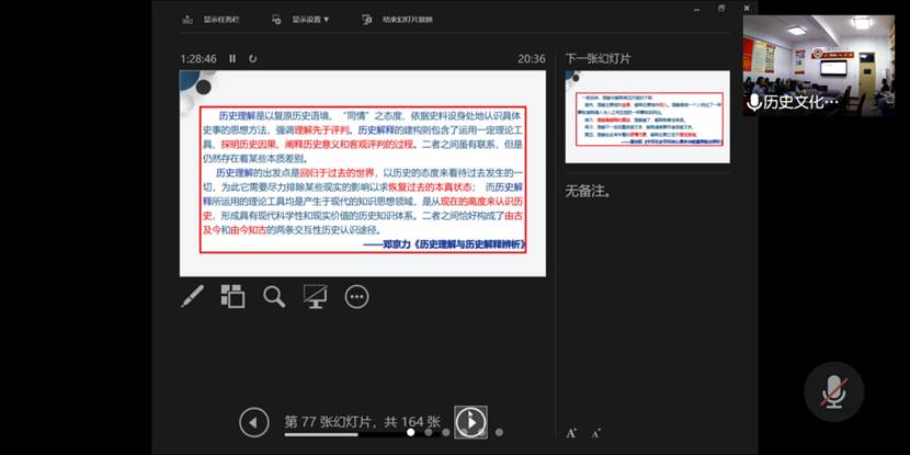 2020年10月5日晚7点,正妹av 在文史楼204会议室举行了主题为“特点·主旨·攻略—高考评价体系视域下的历史教学”的专业讲座。此次讲座线上、线下同步进行,由安丘二中教师、正妹av 兼职硕士研究生导师李德刚主讲,由正妹av 副院长吕厚轩主持,30余名学科教学专业研究生参加了此次讲座。