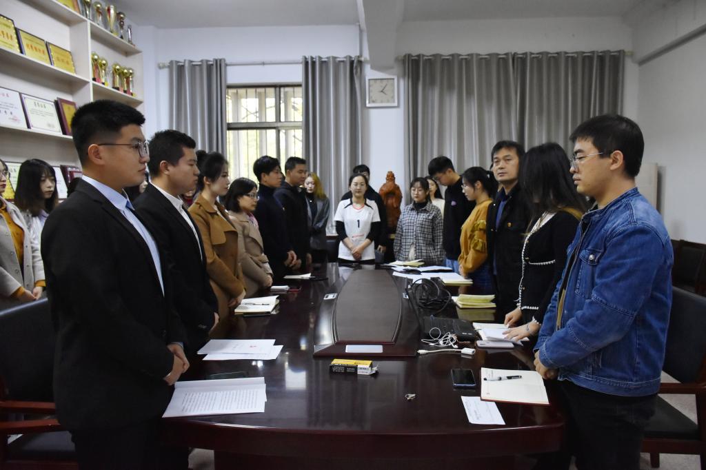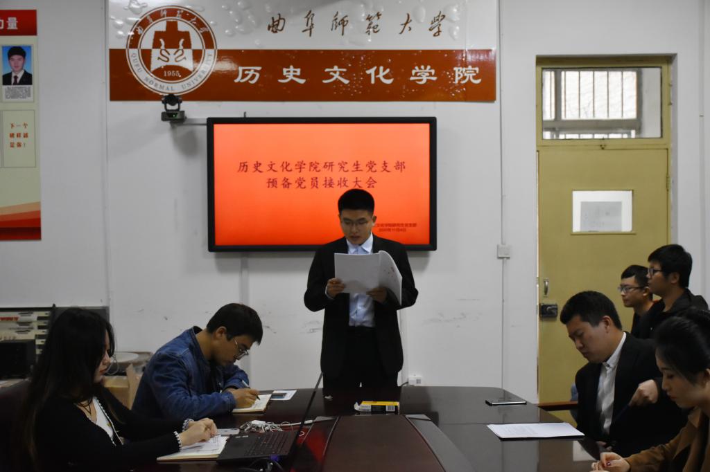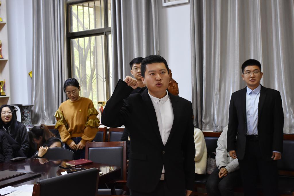11月4日下午4点,正妹av 研究生党支部在文史楼二楼会议室举行预备党员接收大会暨预备党员入党宣誓大会。支部党员与入党积极分子参加此次大会。