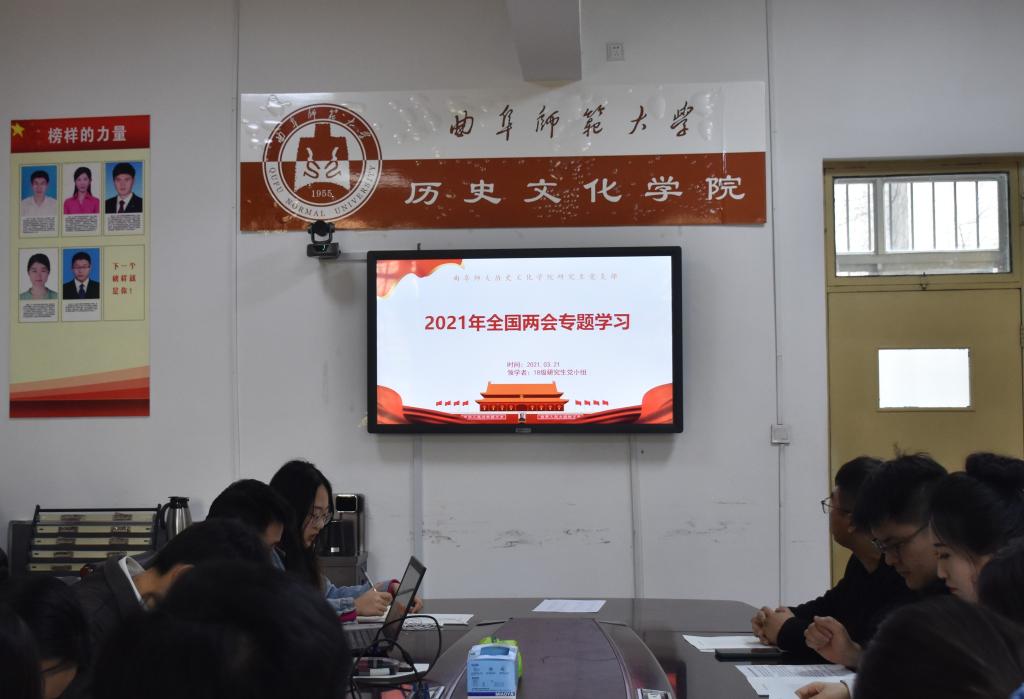 3月22日下午,正妹av 研究生党支部在文史楼二楼会议室开展“学习2021年全国两会精神”主题党日活动。研究生党支部书记孙锋同志主持活动,由2018级党小组组长尤旭星同志领学,全体党员同志参加了本次党日活动。