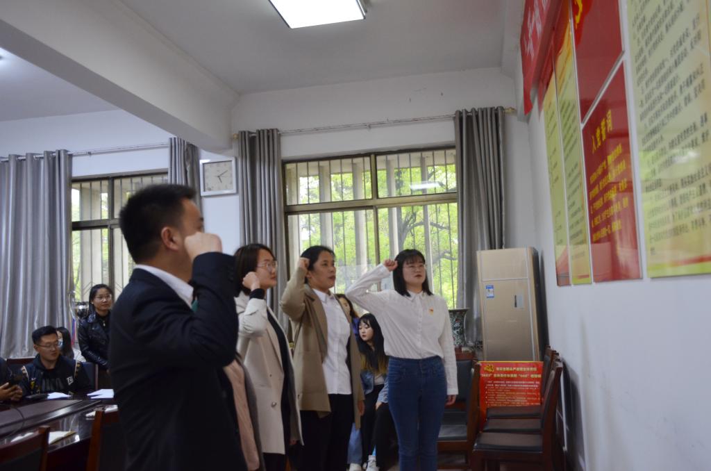 4月21日下午,正妹av 研究生党支部举行2021年上半年第一批预备党员宣誓大会在文史楼二楼会议室举行。全体党员参加会议。