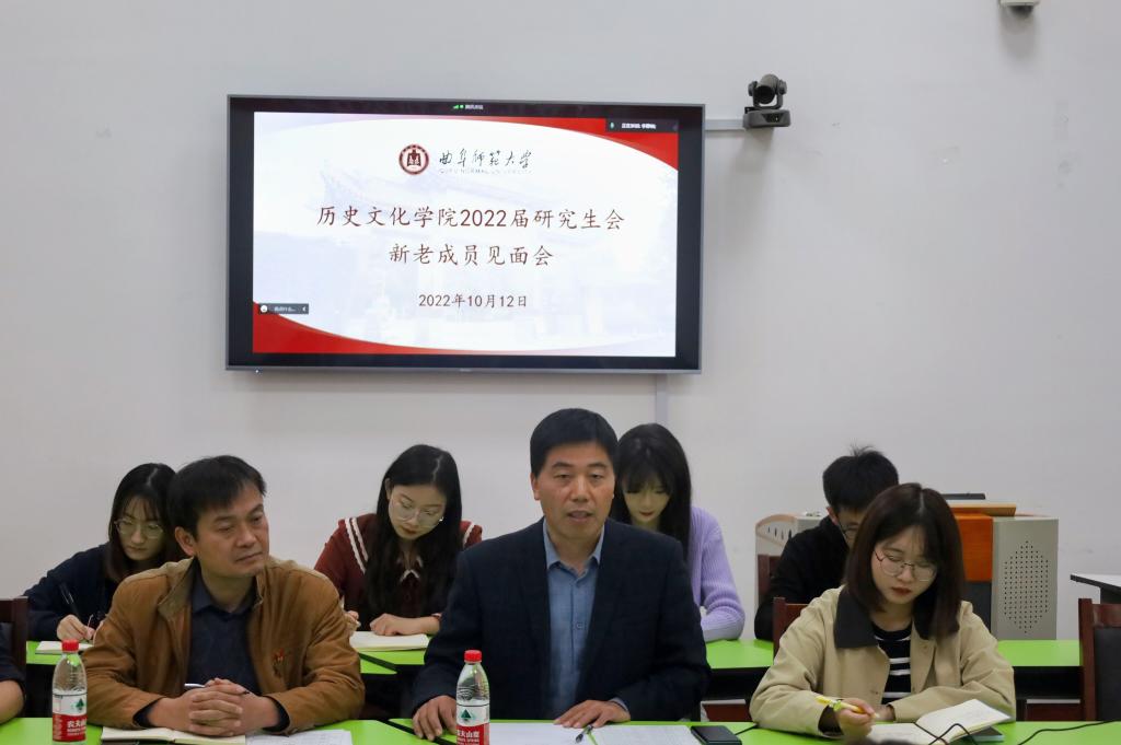 10月12日下午,正妹av 2022届研究生会新老成员见面会在文史楼五楼会议室举行。学院副院长吕厚轩、研究生辅导员孙锋老师出席本次会议,2022届主席团、各部门部长及全体干事通过线上、线下两种方式参加本次会议。本次会议由研究生会主席李明烨主持。