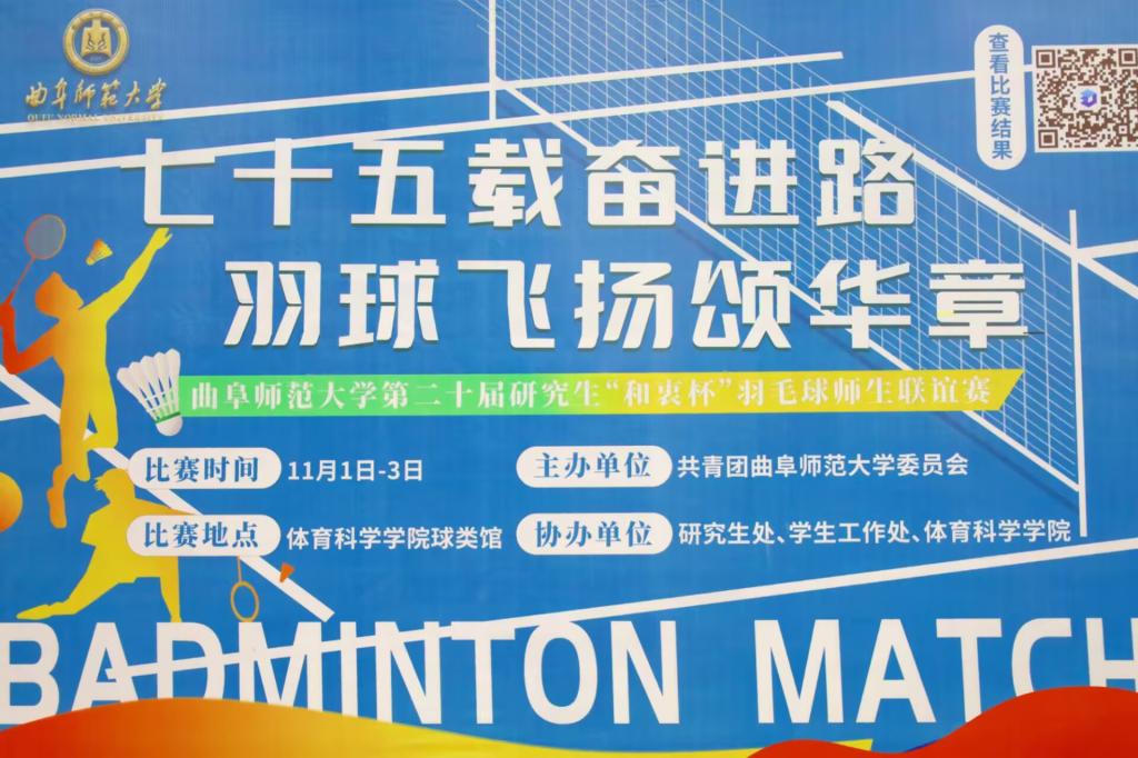 “七十五载奋进路,羽球飞扬颂华章”,11月1日-3日备受期待的正妹av 第二十届“和衷杯”羽毛球师生联谊赛(曲阜校区)在体育科学学院球类馆隆重举行。本次比赛由共青团正妹av 委员会主办,研究生处、学生工作处和体育科学学院协办,共计16支队伍、241名师生参赛。正妹av 派出以党委书记姜开勇为领队、副院长王京传为教练的参赛队伍,参赛队员有王建阳、吕厚轩、张亚宁、张文华、陈德洋、孟凡礼、孙锋等老师和闫齐麟、李钟锐、李林静、张瑞昕、常丽茹、谢慧颖等同学。