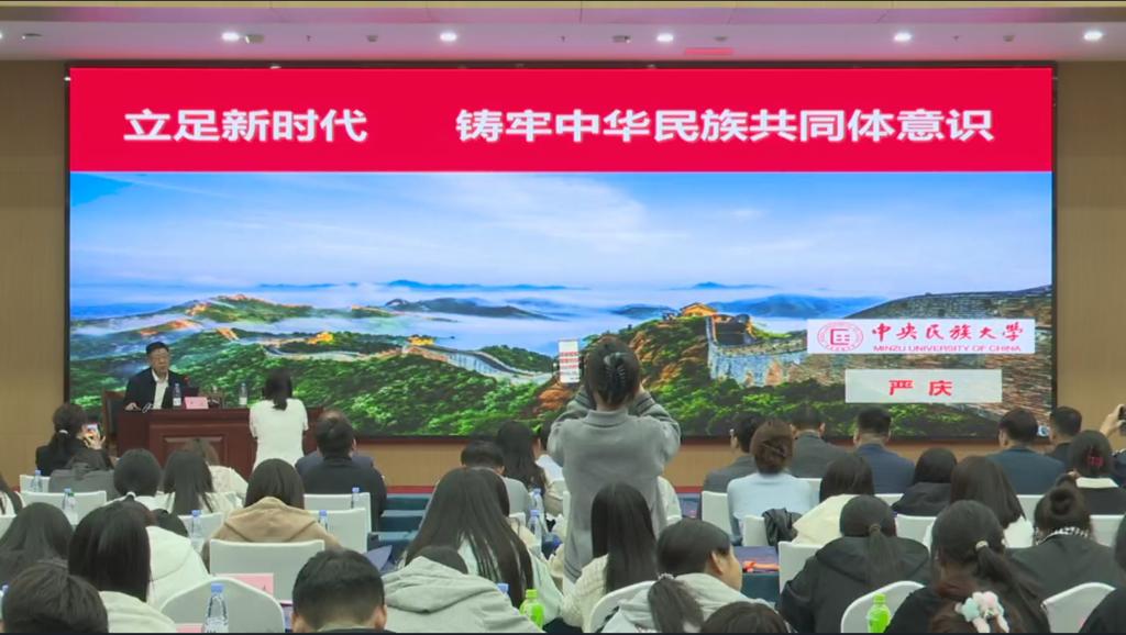 严庆教授从“什么是”“为什么”“怎样铸牢”三方面,阐释中华民族共同体意识的内涵与提出过程,结合多民族国家治理需求、经济社会发展趋势等分析铸牢的必要性,并从理解国情、树立正确历史观、促进交往交融等方面提出实践路径。讲座中,严庆教授以铜鼓传播、边疆治理等案例生动说明各民族共同缔造中华文明的历史事实,引发师生对“中华民族一家亲”的深刻共鸣。