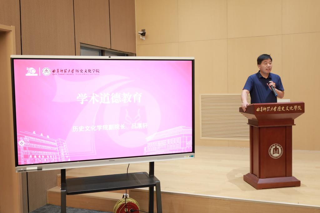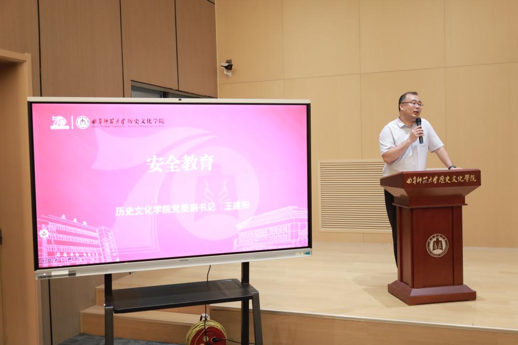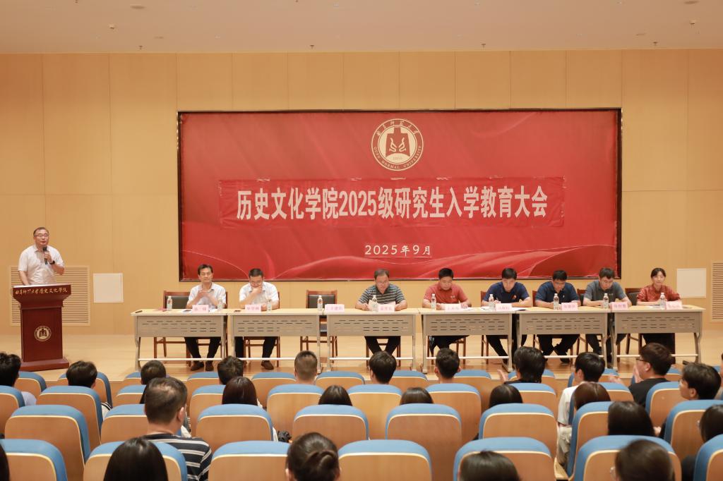 王建阳首先介绍了与会院领导与教师,并对新生的到来表示热烈欢迎。姜开勇致欢迎辞,围绕理想信念展开讲话,勉励新生树立远大目标,坚定学术追求,胸怀家国天下。王京传系统介绍了学院的发展历程、学科建设与师资力量,增强了新生对校史院情的了解与认同。吕厚轩就研究生培养方案与学术道德规范进行说明,强调科研诚信与学术规范的重要性。王建阳针对研究生日常管理及安全教育提出具体要求,为新生顺利适应校园生活提供指导。