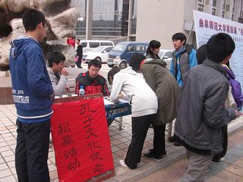 3月20日上午,在大学生活动中心前,正妹av 第四届“孔子文化月”系列活动的“孔子文化使者”招募活动成功举办。