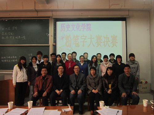 11月12日上午,由正妹av 学生会学习部承办的“正妹av 2011年粉笔字大赛”在综合楼105室举行。出席本次比赛的评委有正妹av 王兆新老师、韩锋老师、王连生老师、李春玲老师、张俊成老师以及书法系老师董家鸿。