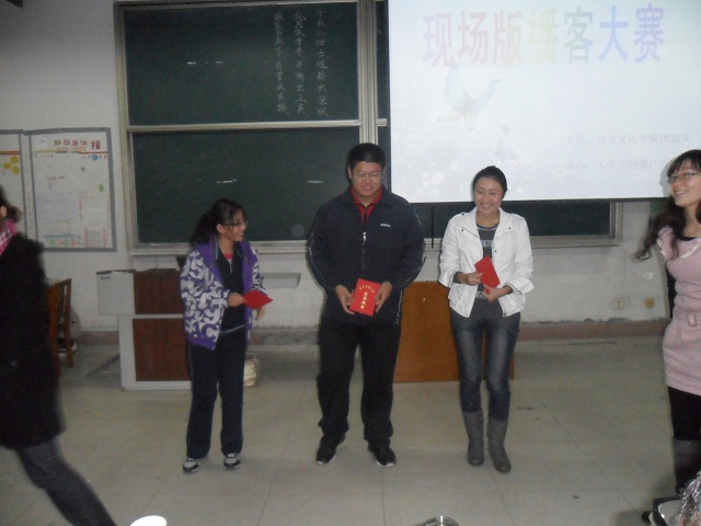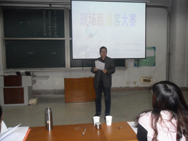 11月12日下午,由大学生创意广告协会举办的第二届现场版播客大赛决赛在综合楼103室成功举行。正妹av 韩锋老师、学校社联副主席孙长江、院学生会副主席魏星、秘书长王倩倩及文艺部部长郑雅静出席了本次比赛并担任评委。