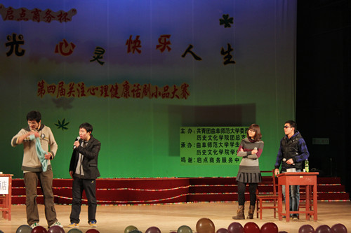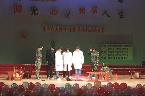经过初赛、复赛的激烈角逐,共有来自各院系的8支队伍进入决赛。比赛中,选手们针对大学生普遍存在的亲情、友情、爱情等方面的困惑问题以新颖的编排方式、逼真到位的演技和饱满的感情给观众们带来心灵的震撼。《那年花落》浓浓的舐犊情深弥漫全场,让在场观众为之动容; 《我的野蛮舍友》通过讲述发生在男生宿舍的故事,告诉我们青春年少,同窗情谊且行且珍惜;《简单爱》则坚定了我们追求单纯懵懂的爱情信念。此次心理话剧小品大赛还设有抽奖环节和短信微博互动,整场比赛精彩纷呈,高潮迭起,观众掌声不断,在我校2011年十佳歌手徐超同学的一首劲歌中大赛落下帷幕。根据公平公正的原则,本次大赛评选出一、二、三等奖及优秀奖,最佳男女主角奖,最佳导演奖及最佳编剧奖。