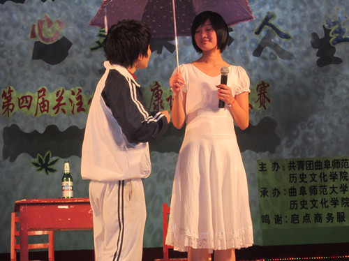 12月11日晚,第四届关注心理健康话剧小品大赛在新大学生活动中心礼堂拉开帷幕。本次活动由共青团正妹av 委员会、正妹av 团总支联合主办,校学生会及正妹av 学生会共同承办。教育科学学院副院长唐爱民、党委学生工作部教育科科长毛永正、文学院老师袁梅、正妹av 党总支副书记尹明法及韩锋、吕厚轩、李春玲老师应邀担任此次大赛评委。