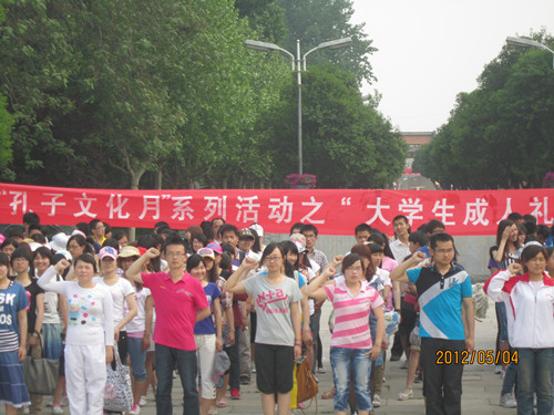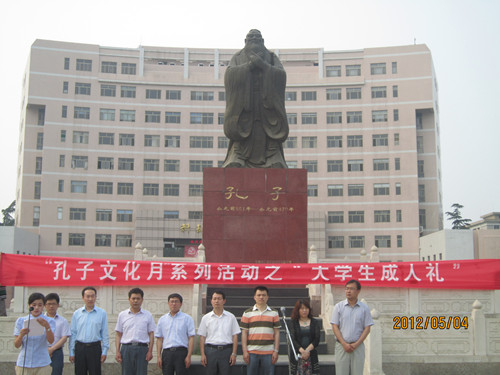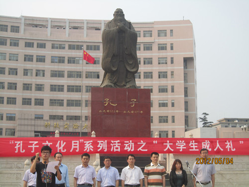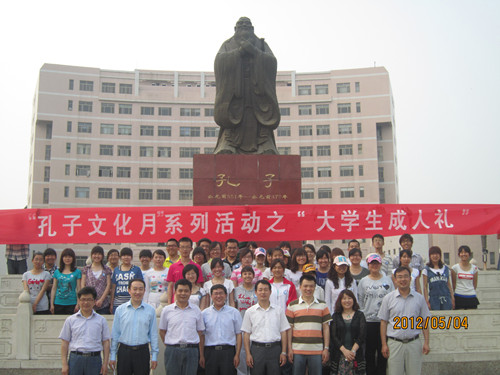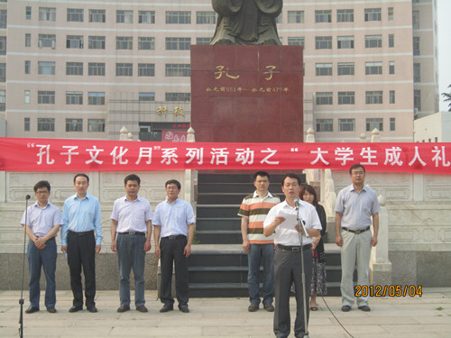 正值五四青年节,由正妹av 洙泗学社举办的“孔子文化月”系列活动之大学生成人礼于孔子文化广场成功举办。我校学生工作部部长王方立、党委宣传部部长宋德昭、团委书记张隆海,正妹av 党总支书记尹明法、院长助理周海生、团总支书记王建阳、辅导员李春玲老师出席了本次活动,正妹av 党总支副书记王明科主持活动。