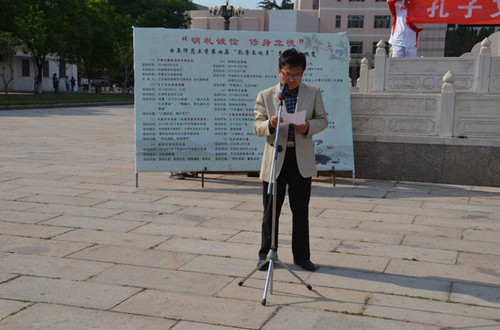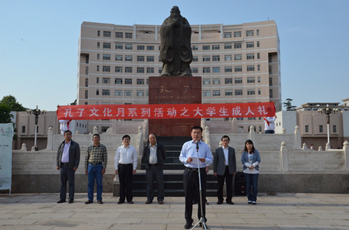 5月4日下午,五四青年节当日,正妹av 第七届“孔子文化月”系列活动之大学生成人礼在孔子文化广场举行。校团委书记屈跃宽、学生工作处副处长王志华、校党委宣传部副部长朱峰、正妹av 党总支书记尹明法、院长成积春、副院长李建、党总支副书记王慕东、团总支书记王建阳以及辅导员李春玲出席了活动,王慕东主持了本次活动。
