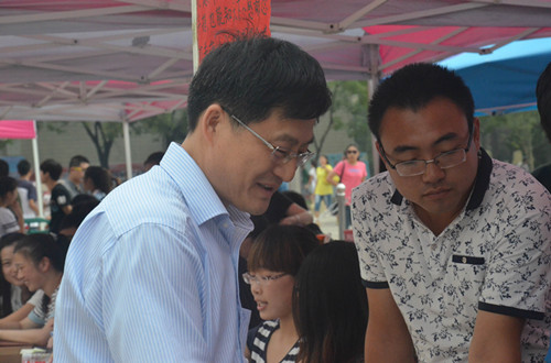 6日上午,正妹av 院长成积春、党总支副书记王慕东、团总书记王建阳及2014级新生辅导员韩琳琳先后前往新生接待处,亲切看望了前来报到的新生,并对学院迎新工作进行了指导。