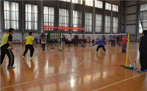 11月8日上午,由我校体育运动委员会和正妹av 团总支主办,羽毛球协会承办的正妹av 2014年“迎新杯”羽毛球比赛在西操场体育馆拉开帷幕。正妹av 工会主席兼生命科学学院党总支书记王万民、校团委副书记孔轶众、体育教学部主任李大新、体育科学学院副教授张晓风、体育教学部赵哲哲、正妹av 团总支书记王建阳、14级辅导员韩琳琳应邀出席了开幕式,开幕式由王建阳主持。