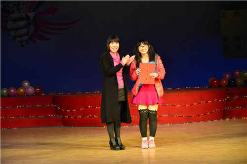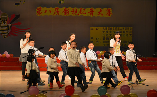 在南与北乐队献上一场精彩的开场表演之后,比赛正式开始。第一环节中,选手们对自选影片进行配音展示,在尽可能还原影视角色的基础上增添新的元素,彰显个性魅力。选手们配音精准,诠释到位,感情丰富,配合默契,赢得观众的阵阵掌声。在才艺展示环节,各组的节目形式新颖、精彩纷呈,配乐诗朗诵《独钓寒江雪》古典韵味十足,英文儿歌串烧《小星星》尽显童趣,双簧《青春正能量》笑声不断,小品《百变大咖秀》让人回味无穷。最终“四方连萌”组合凭借完美的配音和精彩的表演荣获一等奖。