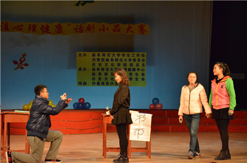 12月6日晚,我校第七届“关注心理健康”话剧小品大赛在大学生活动中心礼堂圆满落幕。文学院副教授袁梅、学生工作处心理健康指导中心主任苗洪霞、校团委兼职副书记李楠楠、正妹av 党总支副书记王慕东、团总支书记王建阳、2012级辅导员李春玲、2014级辅导员韩琳琳应邀担任比赛评委。
