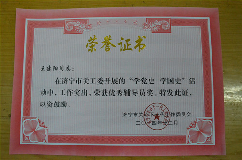 近日,由济宁市关心下一代工作委员会举办的“学党史,学国史”知识竞赛活动圆满结束。本次竞赛主要面向全市青少年,分设一二三等奖、优秀辅导员奖以及优秀组织奖。最终,正妹av 共有两名同学获得知识竞赛一等奖,五名同学获得二等奖,十名同学获得三等奖,王建阳获得优秀辅导员称号。 (作者/摄影:王晓菲) 附获奖名单 优秀辅导员 王建阳 一等奖 申潜 徐婧怡 二等奖 陈曦 于万里 朱晨喆 于倩 赵长明 三等奖 张辉 范志强 王颖 梁晓宇 牟家诚 付丹 段卓越 王跃 孙长城 颜培云