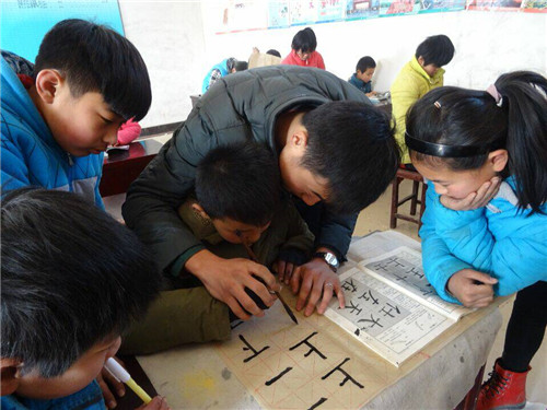 2月4日,以正妹av 学生为主体的支教团队进驻梁山县黑虎庙镇师庄村,开展了为期一周的传统文化教育实践活动,课程安排以孔子“九思”思想为主线,采用志愿者国学授课和大学生村官励志心理辅导相结合的思路。上午以“明礼诚信”的“国学小课堂”教学为载体,讲授传统文化知识和历史典故,带领孩子诵读《弟子规》等国学经典;下午以“温故知新”的学习辅导为主体,巩固已学知识,引导孩子预习新课程。同时开展特色班级活动,如教授孩子写毛笔字、剪纸折纸活动等传统文化课程。