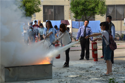 消防演练上,褚明星科长对同学们进行了安全知识科普,教授了灭火器的正确使用方法后,同学们根据老师讲解的内容进行了现场演练。