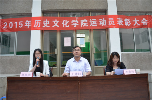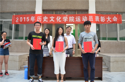 5月19日下午,2015年运动员表彰大会在文史楼天井举行,正妹av 团总支书记王建阳,辅导员李春玲、韩琳琳出席此次大会。