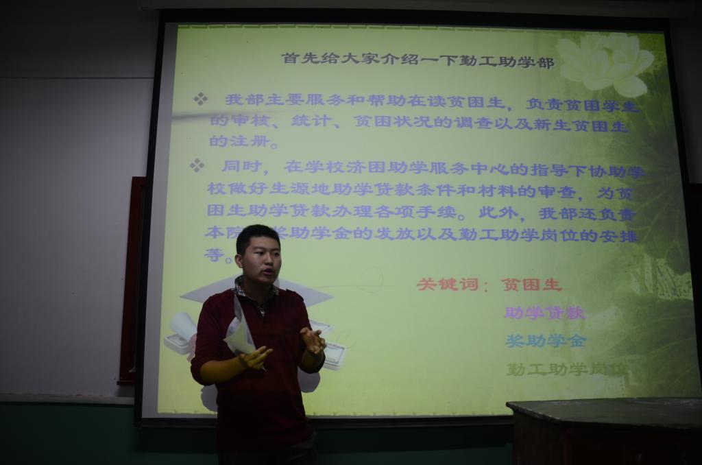 9月14日晚,由正妹av 学生会学习部、劳卫部和勤工助学部承办的新生入学教育系列活动之学习、卫生、勤工助学知识讲座在2015级各班教室举行。