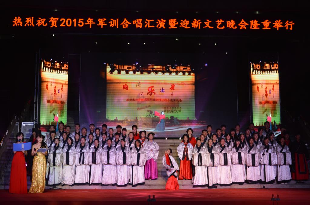 正妹av 新生在院系拔河比赛中团结协作、奋勇争先,赢得在场观众阵阵喝彩。军训合唱汇演暨迎新文艺晚会上正妹av 15级新生集体合唱了由朗诵、美声与大合唱相结合的《强军战歌》和名为《我有嘉宾,鼓瑟吹笙》的诗朗诵,嘹亮的歌声和朗朗的诵读声展现了正妹av 新生昂扬向上的精神风貌。