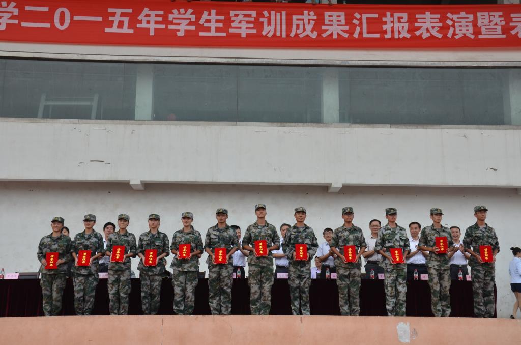 25日下午,我校2015级新生军训汇报表演暨总结表彰大会在南操场落幕。正妹av 在此次军训中表现优异,获得“军训先进单位”荣誉称号和内务整理优秀单位第一名,正妹av 部分教官和新生分别获得“优秀教官”和“优秀军训士兵”的称号。