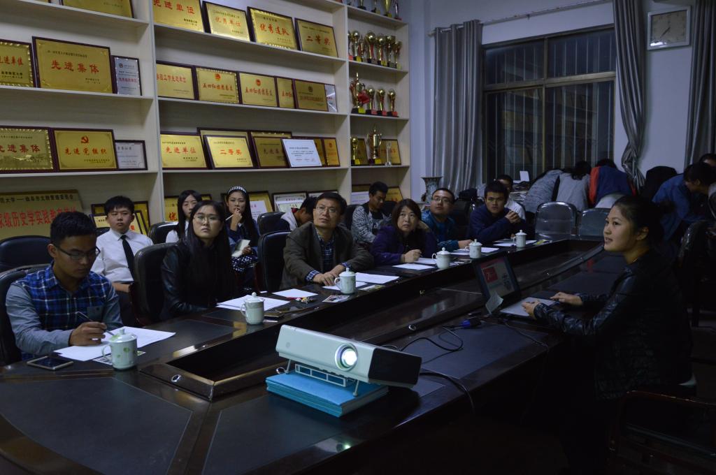 10月11日晚,正妹av 班级文化建设活动评比答辩会在文史楼二楼会议室举行。正妹av 党总支副书记王慕东、2012级辅导员李春玲、2014级辅导员韩琳琳及2014届学生会主席团成员孙小宇、郭启亮、谭新宇等担任评委。2013级与2014级各班代表参加此次答辩会。