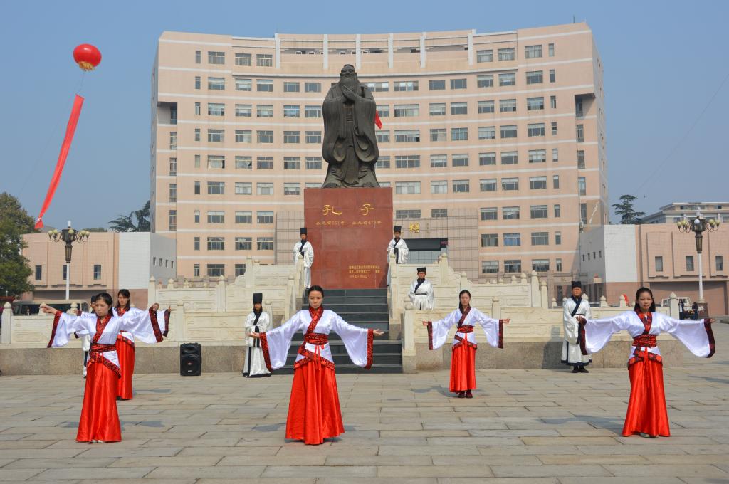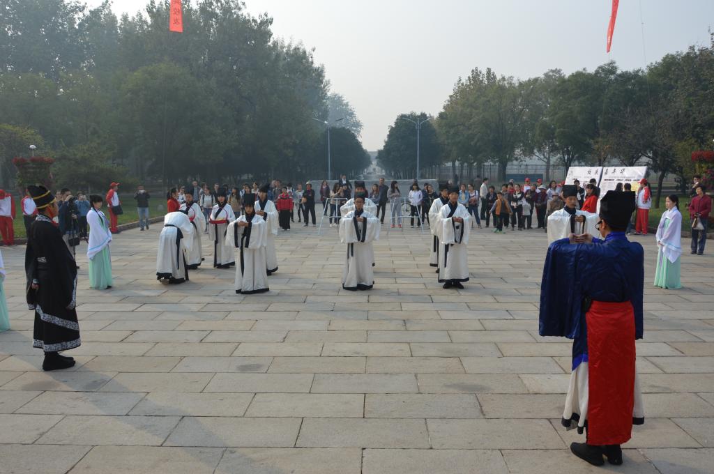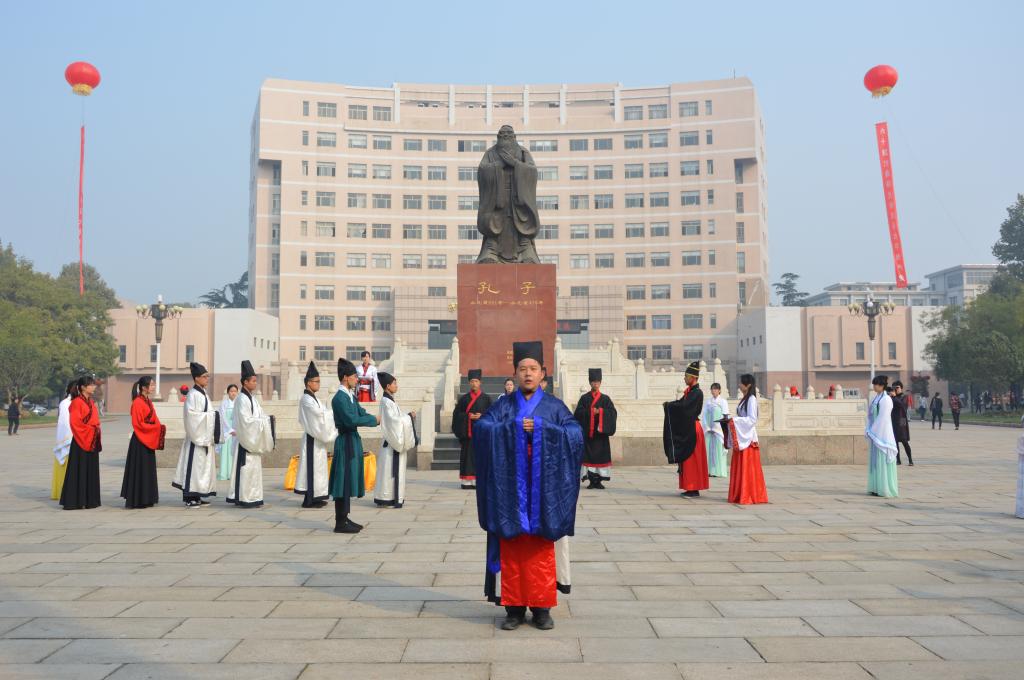 为庆祝曲园六十华诞,10月17日,由正妹av 传统礼仪展演团队带来的“校庆嘉年华”传统礼仪展演在孔子文化广场进行。