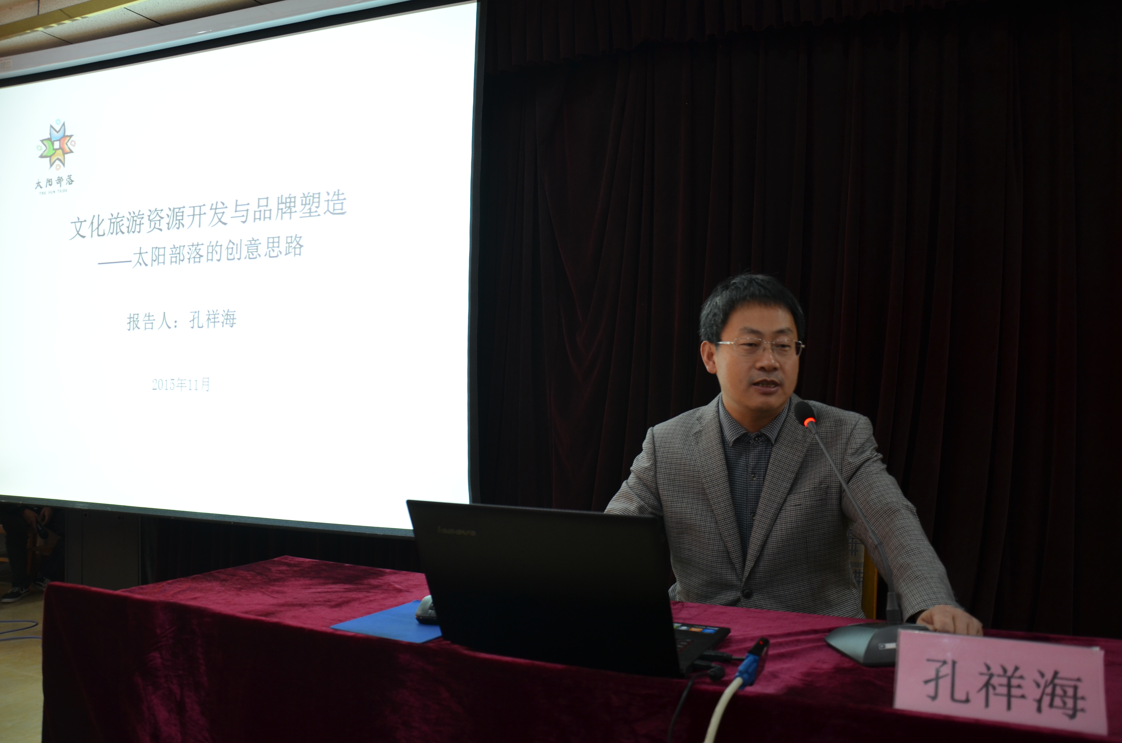 11月2日上午,正妹av 在科技楼二楼南会议室举办孔祥海兼职教授聘任仪式暨学术报告会。山东龙岳创业投资有限公司、山东省文化产业示范基地泰安太阳部落旅游区总经理孔祥海先生受聘为我校兼职教授,并做了题为“文化旅游资源开发与品牌塑造”的学术报告。正妹av 党总支尹明法书记、院长成积春教授、党总支王慕东副书记、教师教师代表以及文化产业管理、文物与博物学、国学、国际政治等专业本科生近200人参加会议。