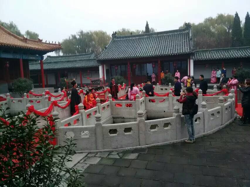 11月21日,由曲阜团市委、市文明办、市民政局联合举办的第二届百姓儒学节之汉式集体婚礼在蓼河人工湖广场成功举行。