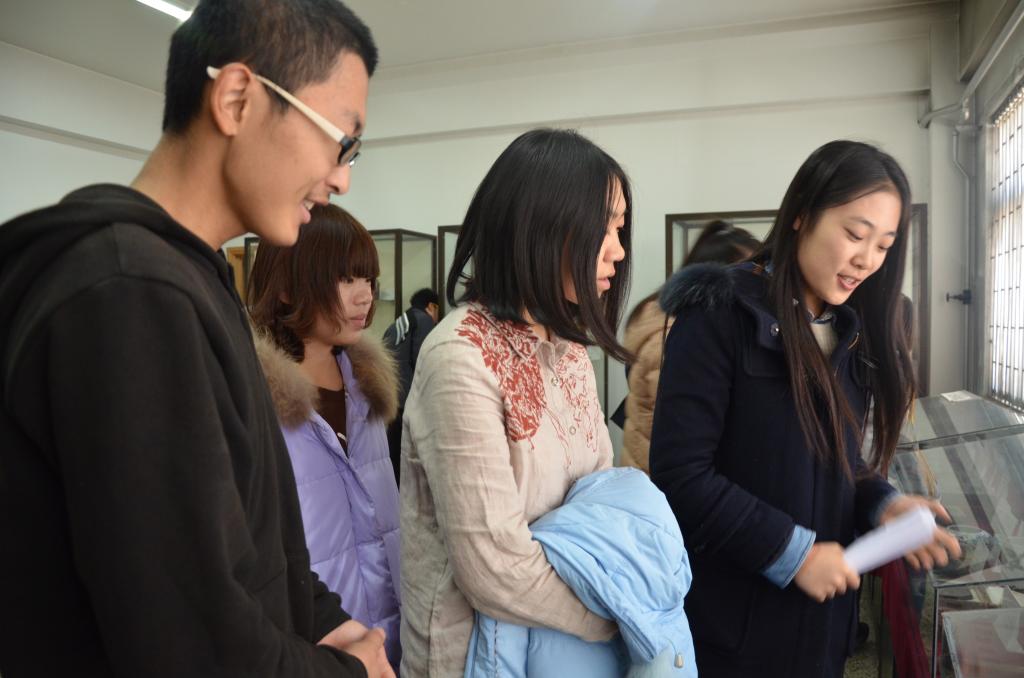 12月9日、11日,正妹av 组织2015级新生游览了文物馆。正妹av 骆明老师全程陪同。 在正妹av 专门挑选培训的学生讲解员的引导下,同学们参观了各个展厅的青铜器、瓷器、圣旨及古币。学生讲解员全程为大家解说,向大家详细介绍了各种文物的典故及文化背景,使正妹av 新生对文物有了更深地了解。