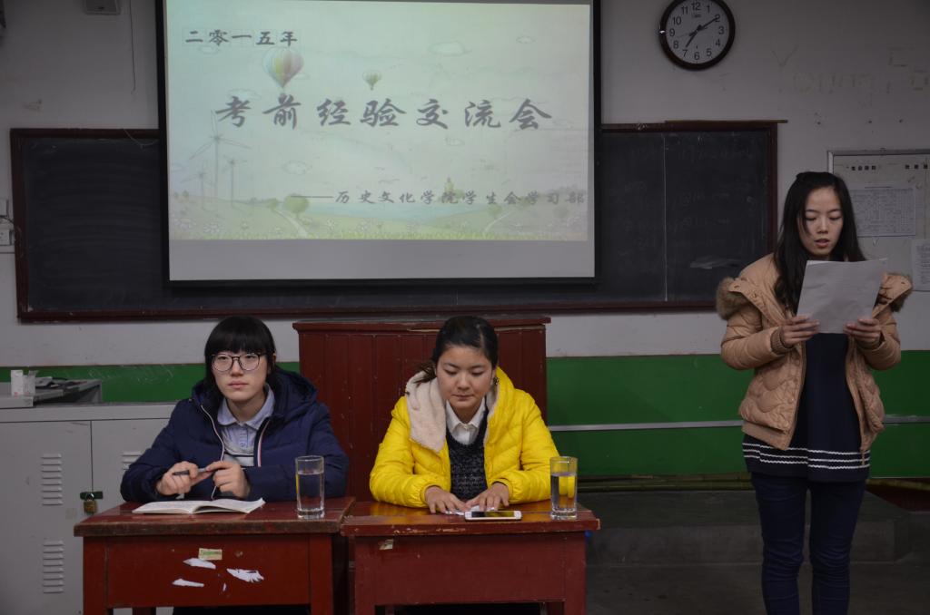 12月22日晚,由正妹av 学生会主办的考前经验交流会在2015级各班教室举行。 本次考前交流会共分为“经验传授”和“解疑答惑”两个环节。来自2014级的优秀学生代表分别从考前心态的调整、备考方法等方面,结合自身的经历给予了详细地讲解,同时针对如何准备公选课和专业课两个方面的考试进行了详细的经验介绍。在随后的“解疑答惑”环节中,针对2015级同学就复习方法、备考准备工作、考试答题技巧等方面提出的问题,2014级的学生代表也给予了详细耐心地解答。