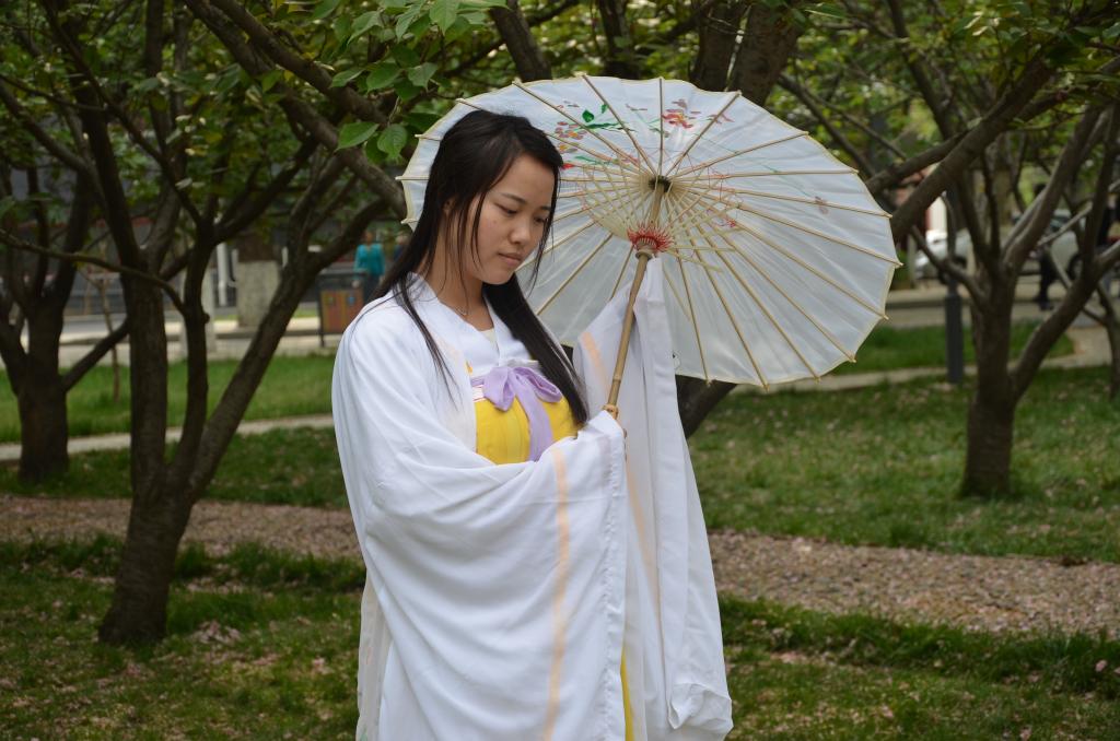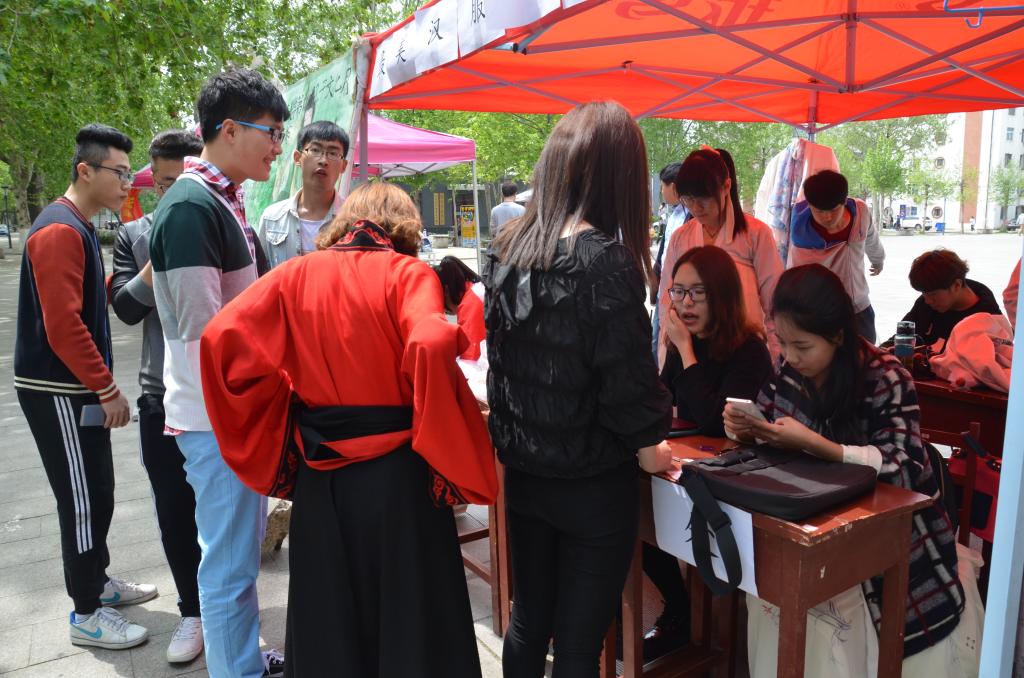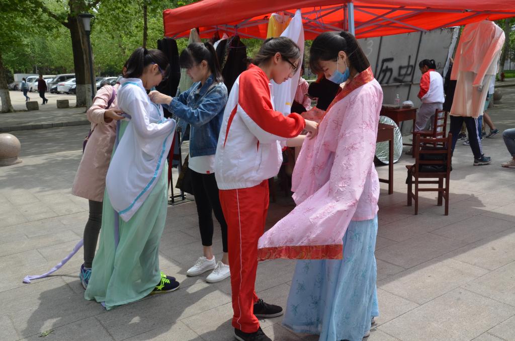 4月17日,正妹av 在大学生活动中心前举办了“最美汉服代言人”的海选活动。