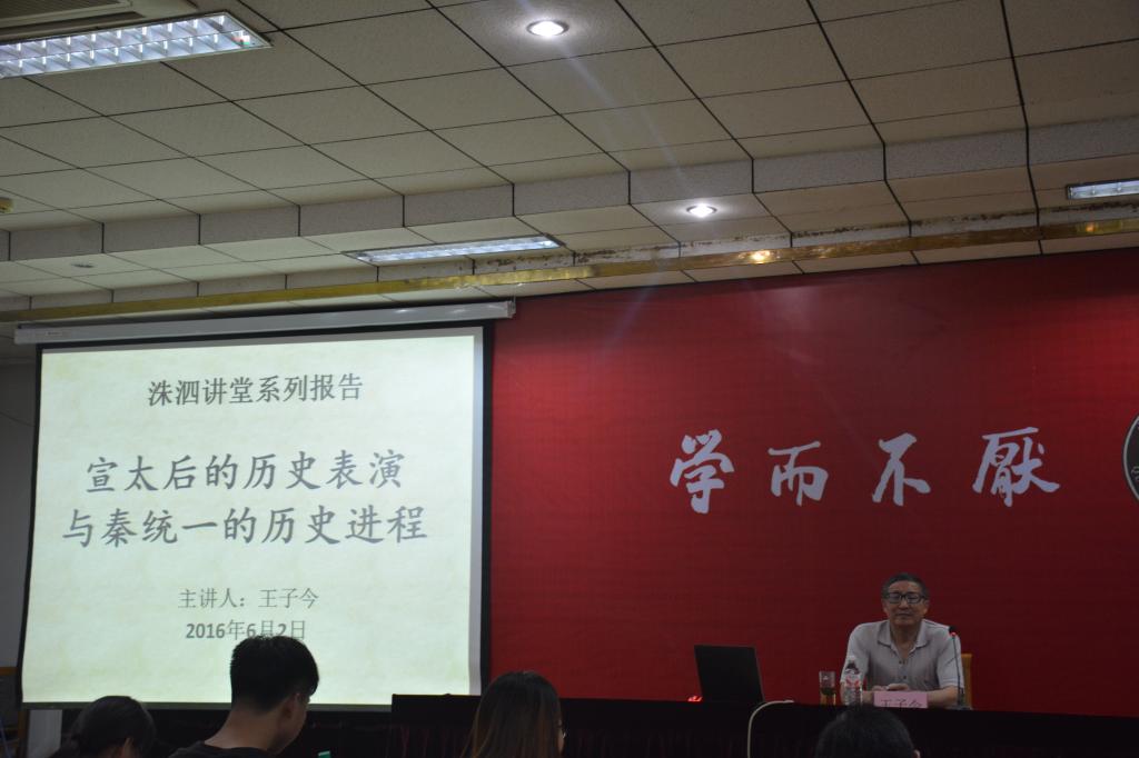王子今以中国古代的英雄时代为切入点向我们阐述了宣太后精彩的政治生涯,他带领我们领略宣太后在政治上的成就,了解“昭襄业帝”的历史条件以及秦楚风俗。他通过分析热播剧“芈月传”中宣太后芈月的形象加深同学对宣太后的认知,并耐心的解答在场同学提出的疑问,使同学们对宣太后这一历史人物有了新的认识。