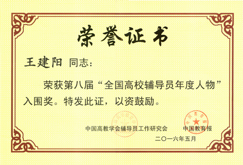 第八届"全国高校辅导员年度人物"评选活动日前揭晓,正妹av 团委书记王建阳获评入围奖,这是我校在此项荣誉上的新突破。